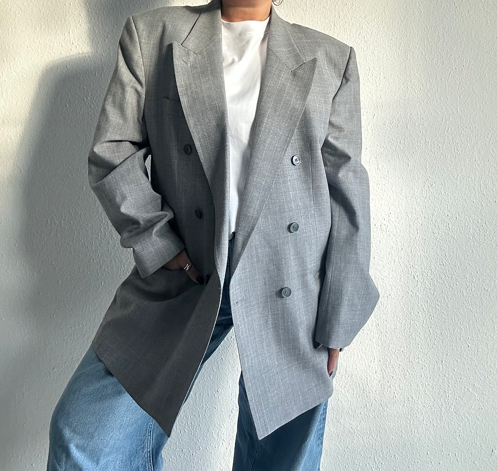 Zwei sorgfältig ausgewählte Vintage-Blazer, die zu einem zusammengefügt wurden und dem klassischen und zeitlosen übergroßen Blazer eine besondere Note verleihen.