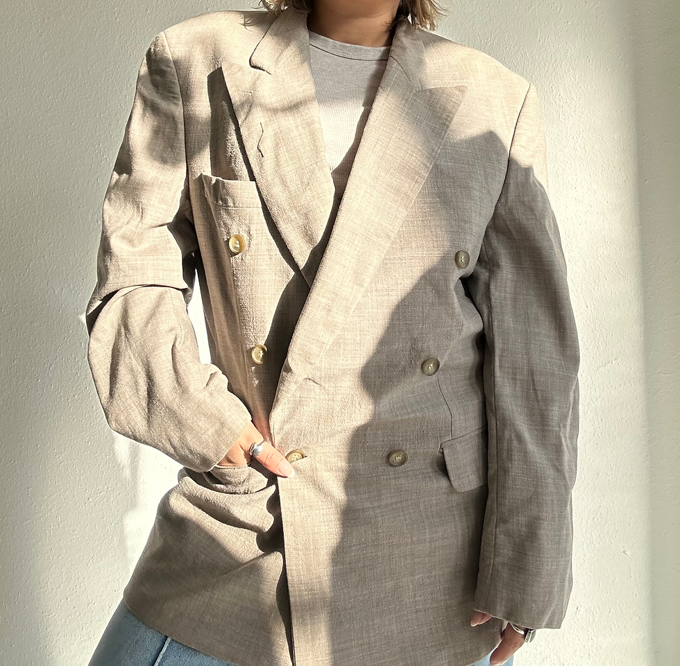 Stunning wild leather cappuccino and wool beige contrasted blazer